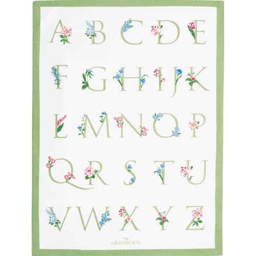 GreenGate Viskestykke "Pieceprinted" "Agnes Letter White"