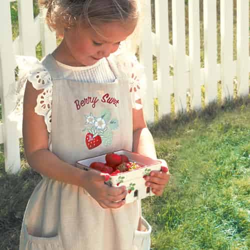 GreenGate Børneforklæde "Berry Sand" med broderi