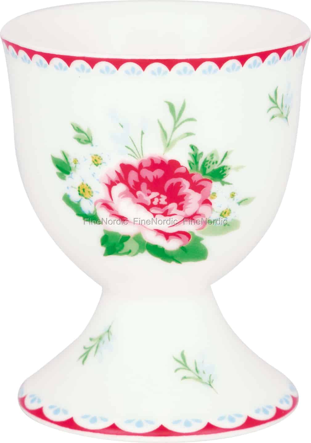 Alivia White-kollektionen fra GreenGate er en hyldest til de enkle, glædelige øjeblikke, der starter vores dag. Dette smukke æggebæger indfanger essensen af en fredfyldt landhave, hvor levende roser og små vilde blomster blomstrer i harmoni. Hver detalje, fra de omhyggeligt tegnede kronblade til de friske grønne blade, er designet til at vække en følelse af nostalgi og varme. Det er en genstand, der ikke blot holder dit morgenæg; det rummer løftet om en smuk dag forude.