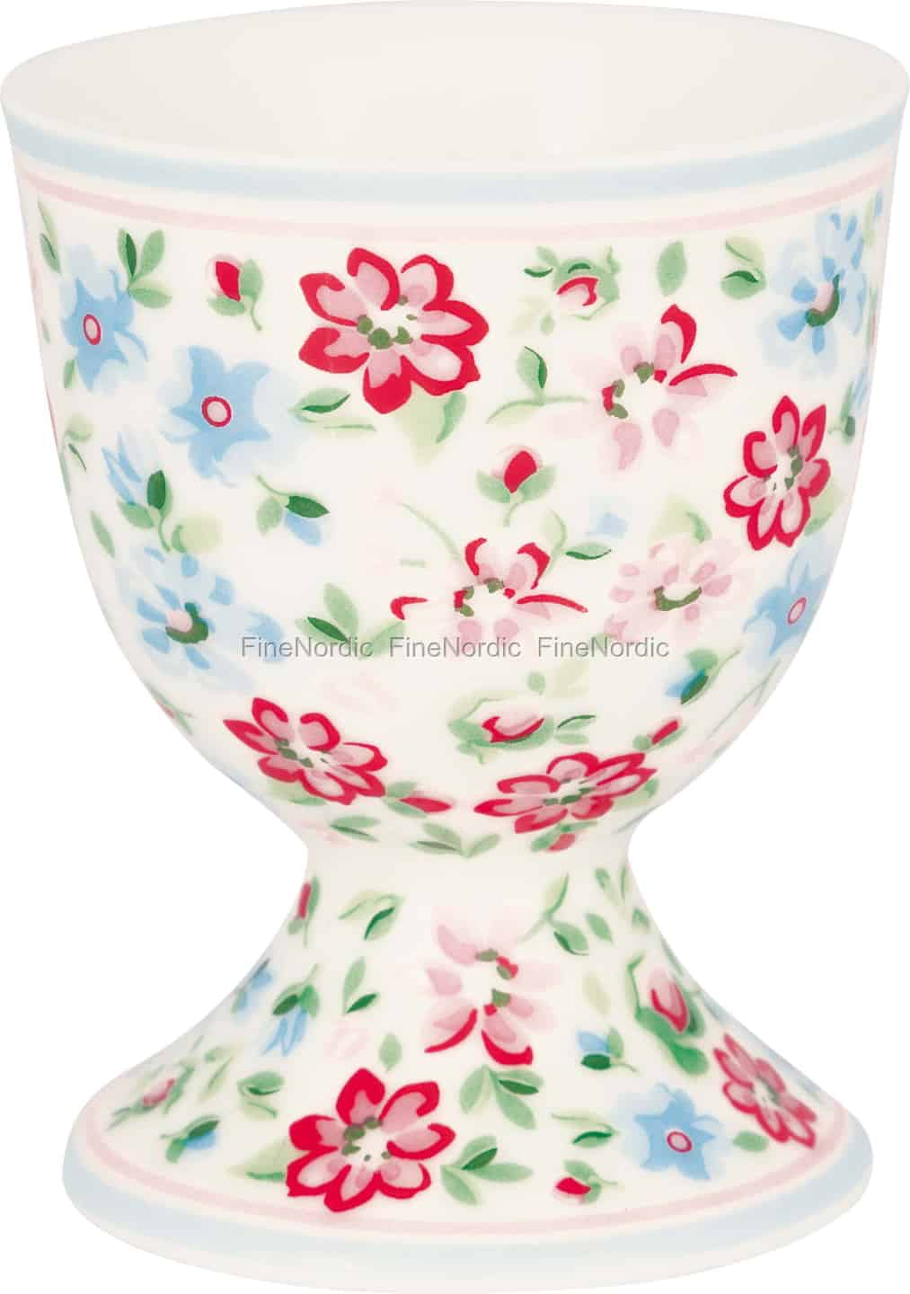 Dette er mere end blot et æggebæger; det er en invitation til at sætte farten ned og nyde de små øjeblikke. Forestil dig det på din morgenbakke, placeret ved siden af en varm croissant og en kop te, hvor det tilføjer et strejf af hygge til starten på din dag. Det er et stykke, der fortæller en historie om håndværk og kærlighed, designet til at blive mikset og matchet med andre skatte fra GreenGate for at skabe en borddækning, der er helt din egen.