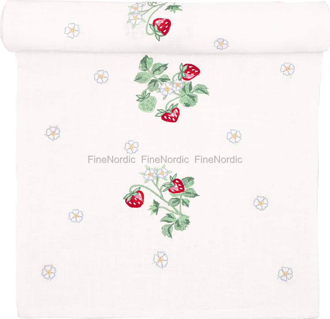 GreenGate Bordløber "Berry White" med broderi 40 x 140 cm