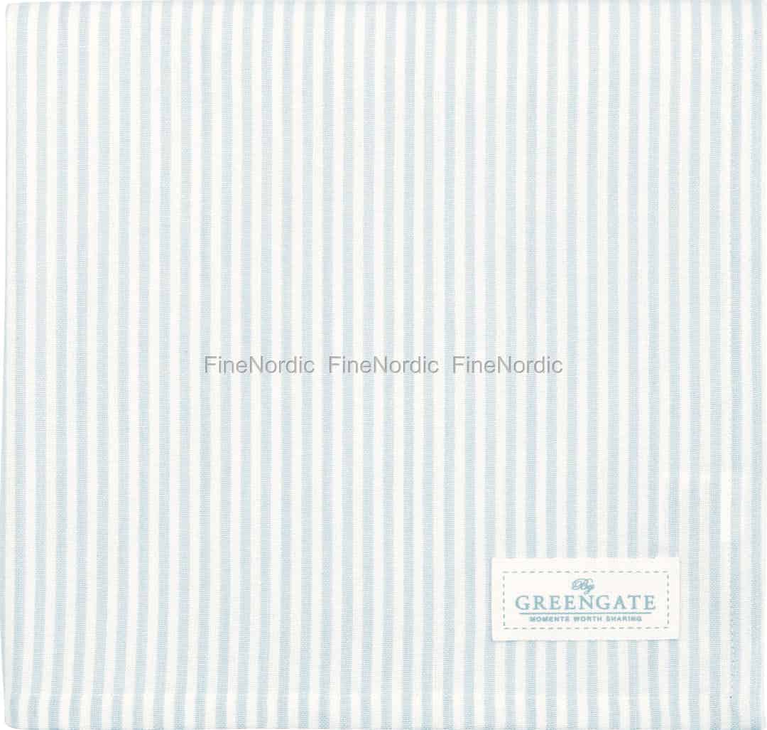 Forestil dig et blidt morgenlys, der falder over dit bord, blødgjort af den klassiske charme fra lyseblå striber. Denne dejlige bomuldsdug fra GreenGate skaber rammerne for stille morgenstunder og dyrebare samtaler.