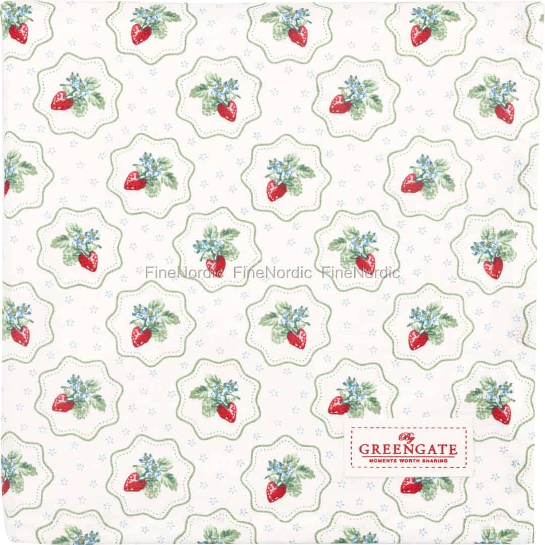 Forestil dig en solbeskinnet eftermiddag, duften af frisk bagværk i luften. Dug Berry Petit White fra GreenGate er den perfekte baggrund for disse dyrebare øjeblikke med sit yndige mønster af søde jordbær og spinkle blomster.