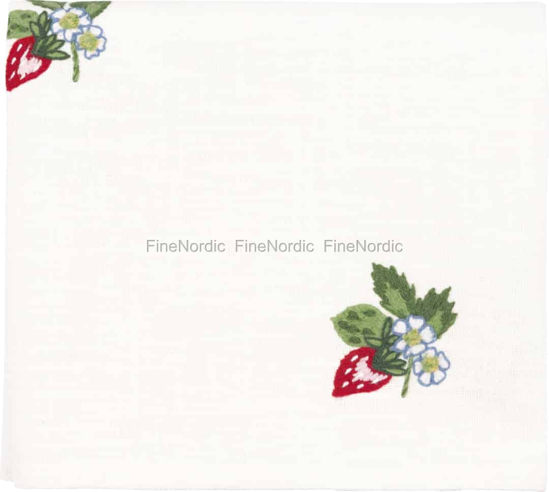 - Udsøgte broderede detaljer: Hvert hjørne er prydet med smukt broderede jordbær og blomster, som tilføjer et strejf af kunsthåndværk og nostalgisk charme til din borddækning.