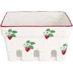 Forestil dig en solbeskinnet morgen, hvor duften af en sommerhave driver ind ad vinduet. Med Berry White-frugtskålen kan du holde fast i den følelse hele året rundt. GreenGate har på smukkeste vis genfortolket den ydmyge bærkurv i keramik af høj kvalitet og skabt et stykke, der er både vidunderligt nostalgisk og uendeligt praktisk. Det fine mønster af modne jordbær, hvide blomster og friske grønne blade er spredt ud over den råhvide glasur og vækker minder om skovture og hjemmelavet marmelade.