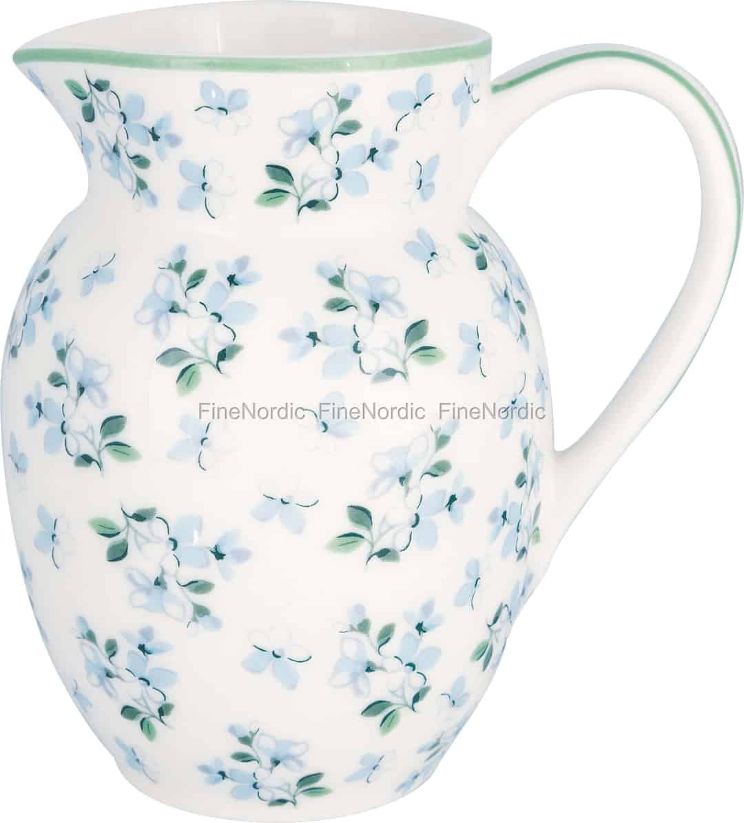 Alaia White-kollektionen fra GreenGate er en kærlighedserklæring til de enkle, fredfyldte øjeblikke, der forvandler et hus til et hjem. Denne smukke kande er indbegrebet af den ånd med sine spredte, lyseblå blomster, der ser ud, som var de malet i hånden med blide akvarelstrøg. Den klassiske, afrundede form føles vidunderlig at holde om, mens den spinkle grønne linje langs kanten tilføjer en sidste, gennemtænkt detalje. Det er en genstand, der ikke blot tjener et formål; den fortæller en historie om solbeskinnede morgener og naturens stille skønhed.