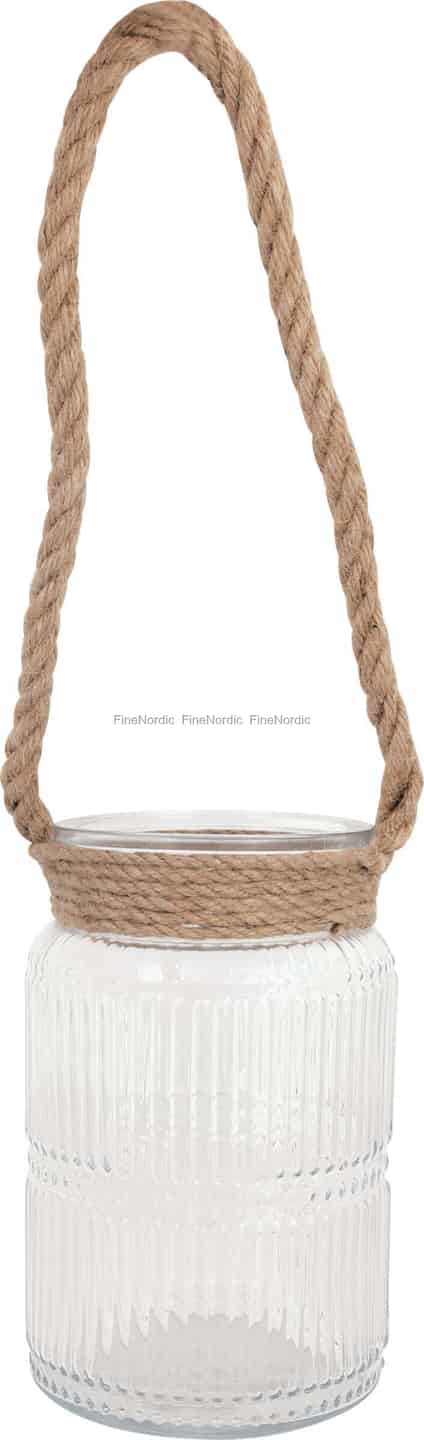 Opdag den enkle skønhed i denne GreenGate-lanterne, hvor raffineret glas møder rustik charme. Den lodret rillede overflade på det klare glas er designet til at skabe et smukt, diffust skær, der blødgør lyset fra et stearinlys og kaster blide mønstre ud i rummet. Denne elegante detalje komplementeres perfekt af det tykke naturreb, der er viklet om halsen og danner et håndtag, som føles både praktisk og autentisk. Det er et design, der fortæller historier om forblæste kystlinjer og stille, fredfyldte øjeblikke.