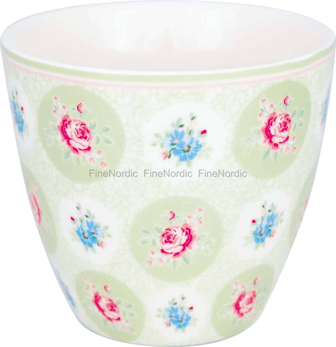 Forestil dig at holde om din morgenkaffe i en kop, der føles som en gåtur gennem en sommerhave. Lattekop Elle Pale Green fra GreenGate bringer denne blide charme til dine hænder med sine fine blomsterdetaljer og bløde, beroligende farver.