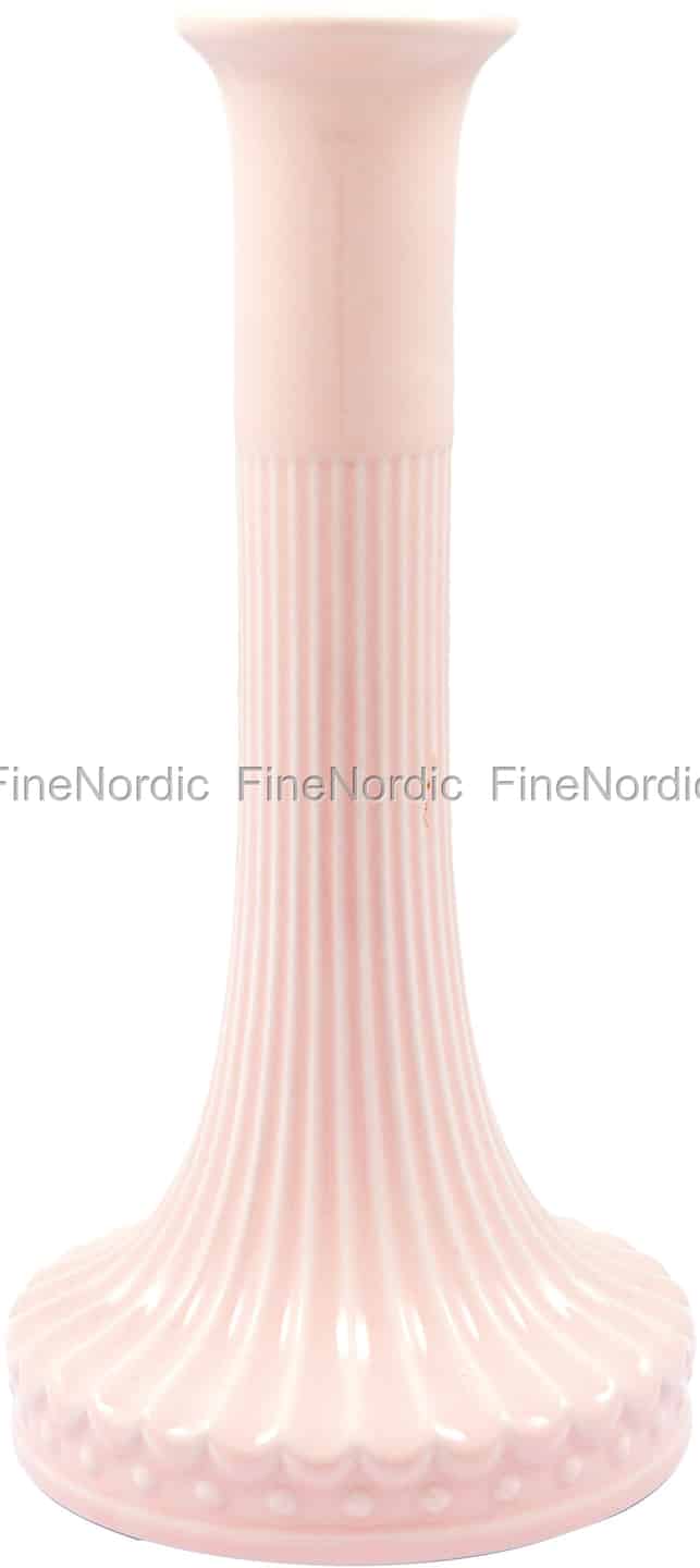 Forestil dig det bløde, flagrende skær fra et stearinlys, der danser hen over denne smukke keramikstage. Dens sarte lyserøde nuance og klassiske rillede design bringer en stille, romantisk charme til ethvert rum og inviterer dig til at nyde et øjeblik af enkel sindsro.