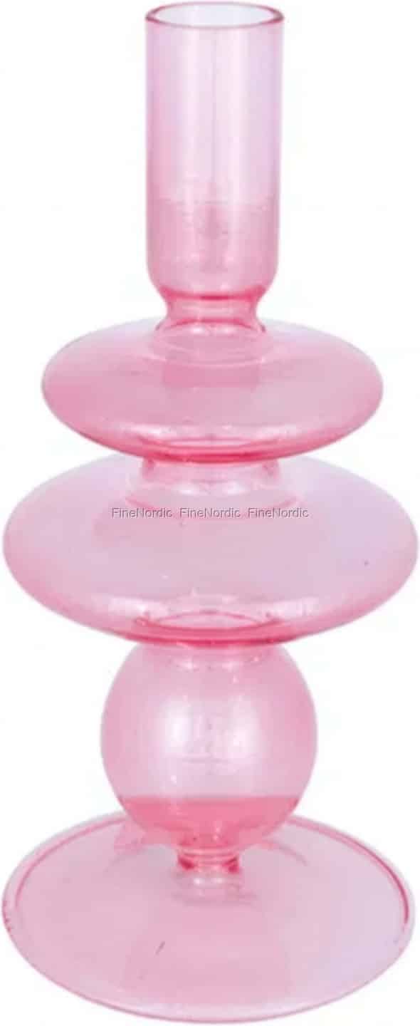 Forestil dig det bløde skær fra et levende lys, der smukt filtreres gennem en varm, støvet rosa nuance. Denne udsøgte lysestage i glas fra GreenGate er mere end blot et stykke tilbehør; det er et lille kunstværk, skabt til at bringe et blidt og stemningsfuldt lys til dine fredfyldte stunder.