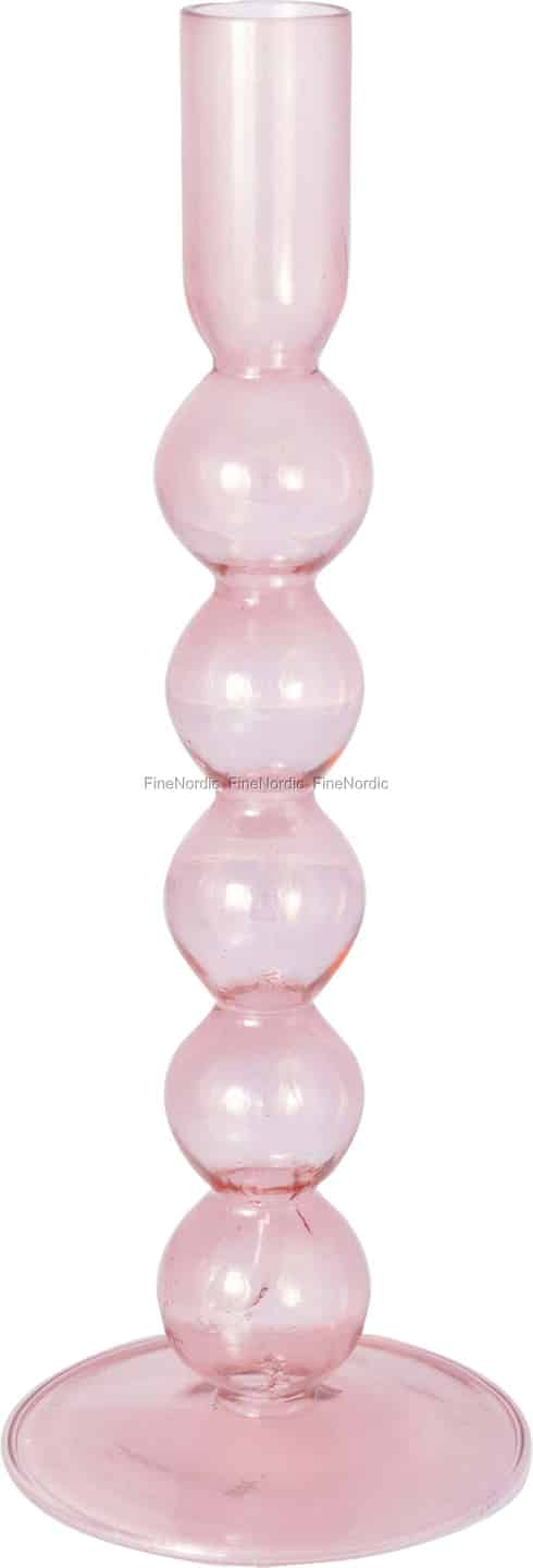 Oplev en lysestage, der er lige så meget en skulptur, som den er en kilde til blidt lys. Fra det anerkendte danske mærke GreenGate hylder dette design den enkle skønhed i form og farve. Stagens stilk, en legende kaskade af fem perfekt afrundede glaskugler, rejser sig fra en stabil, cirkulær base til en klassisk cylindrisk top. Det gennemsigtige glas, tonet i en sart, støvet rosa, fanger lyset på smukkeste vis og vil med garanti blive et samtaleemne i dit hjem.