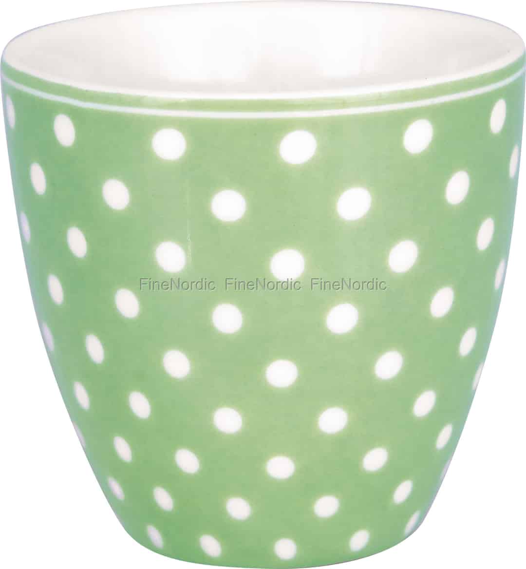 Forestil dig at holde denne charmerende kop i hænderne, mens den glatte keramik varmer dine håndflader. Den glade, lysegrønne farve og de klassiske polkaprikker bringer et strejf af simpel glæde til din morgenespresso eller eftermiddagste.