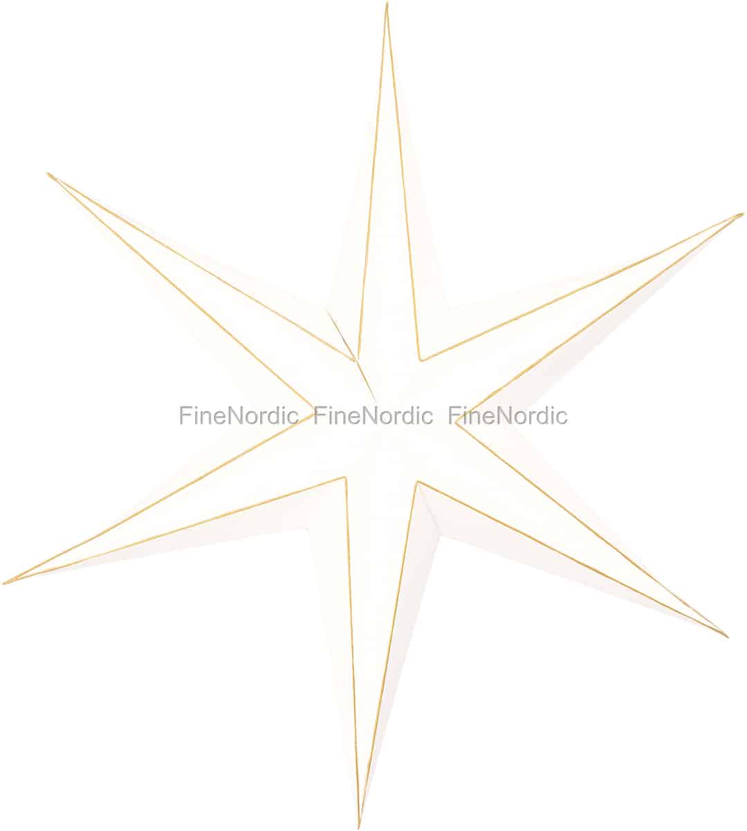 Forestil dig en klar vinteraften, hvor verden udenfor er stille af sne. Denne smukke papirstjerne, med sin rene hvide form og fine guldrand, indfanger den stille magi fra en traditionel skandinavisk jul.