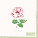 Agnes White-kollektionen fra GreenGate er en kærlighedserklæring til den tidløse skønhed i en blomstrende have. Hver serviet er prydet med en enkelt, fin rose, fanget i bløde nuancer af pink og karminrød med friske grønne blade. Designet føles som en side fra en vintage botanisk skitsebog, sat mod en ren hvid baggrund og indrammet af en enkel, elegant grøn kant. Det er et design, der hvisker om stille eftermiddage, varmt solskin og den simple glæde ved naturens kunst, og som inviterer en følelse af ro og ynde ind i dit hjem.