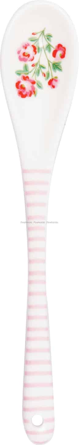 Forestil dig den enkle glæde ved en sommermorgen, fanget i en enkelt ske. Liana White skeen fra GreenGate bringer netop denne følelse ind i dit køkken og forener sarte blomster med en sød, slikstribet charme til dine daglige stunder af stille nydelse.