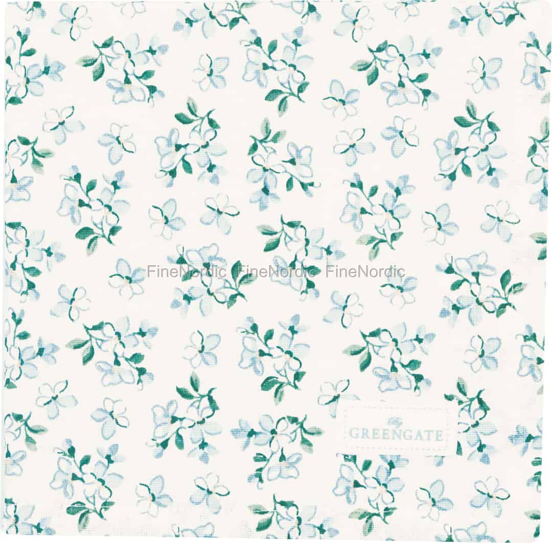- Charmerende blomsterdesign: Servietten er prydet med et fint, malerisk print af lyseblå blomster og tilføjer et strejf af romantisk, skandinavisk landidyl til ethvert måltid.