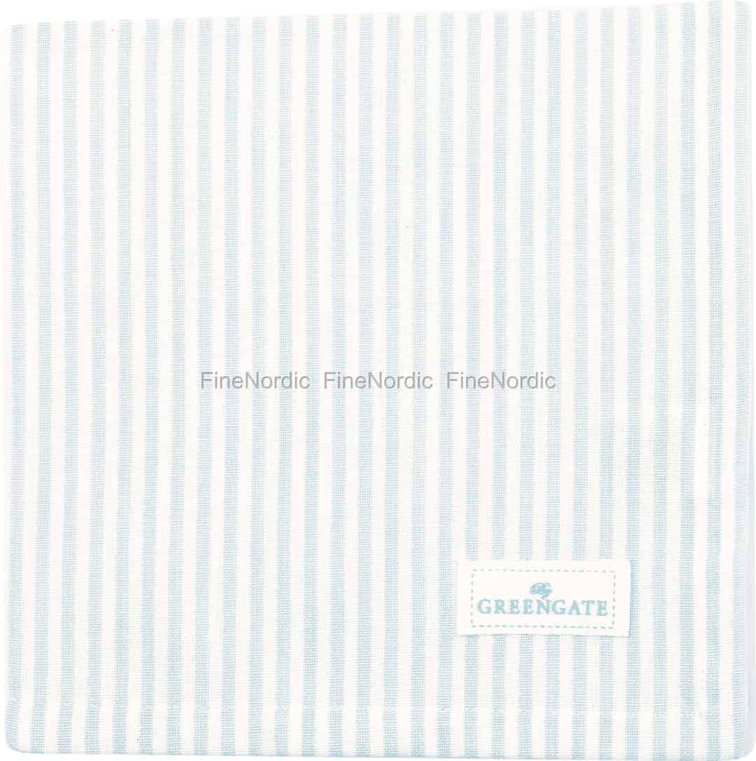 GreenGates Alexa Stripe-kollektion er en kærlighedserklæring til den enkle skønhed ved den skandinaviske kyst. Den blide rytme i de lyseblå og cremefarvede striber vækker minder om solblegede træbroer og det rolige, åbne hav en tidlig morgen. Fremstillet af en vidunderligt taktil bomuld er denne serviet mere end blot et stykke bordtekstil; den er en invitation til at sætte farten ned og nyde øjeblikket. Mærk den bløde, betryggende tekstur, når du dækker bord til en stille morgenmad eller en afslappet frokost med dine kære, og bring en følelse af fred og blid orden ind i dit hjem.