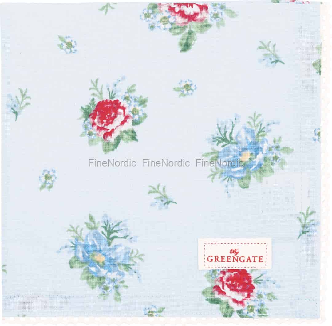 Lad Alivia Pale Blue servietten føre dig til et stille hjørne i en dansk landhave. Hver detalje, fra de bløde klynger af røde og blå blomster til den sarte himmelblå bomuld, er designet til at fremkalde den enkle glæde ved en perfekt sommerdag. Det er et stykke tekstil, der fortæller en historie om afslappede frokoster, nybagte scones og samtaler, der varer ved, længe efter tallerkenerne er ryddet. Denne serviet er ikke kun til måltider; den er til at skabe øjeblikke af varme og nærvær omkring dit bord.