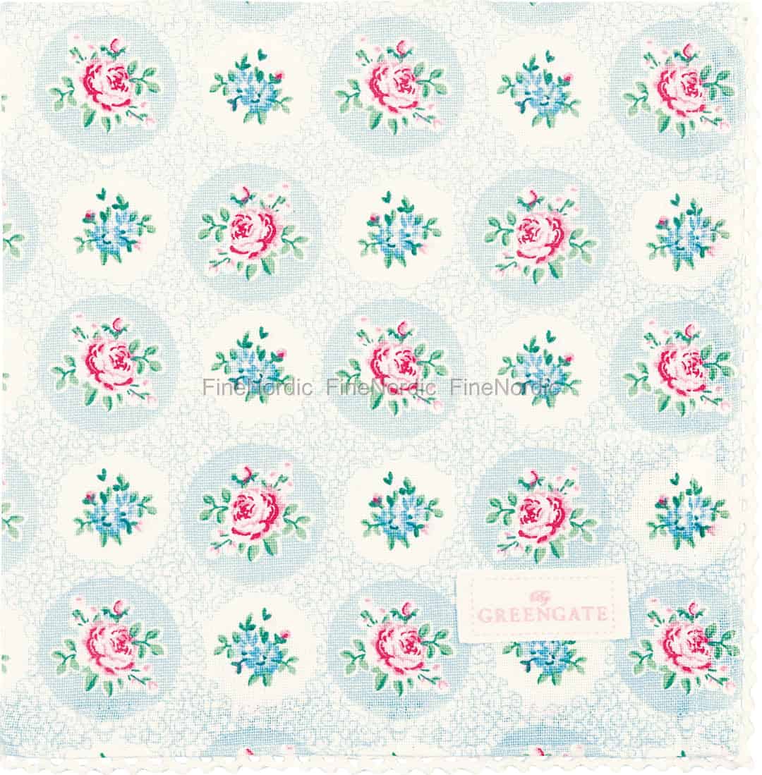 Forestil dig et bord dækket til eftermiddagste, badet i et blødt og varmt lys. GreenGate 'Elle Pale Blue' servietten puster liv i denne yndige scene med sit charmerende vintage-blomsterprint og bløde bomuldsfornemmelse, der tilføjer et strejf af tidløs romantik til enhver anledning.