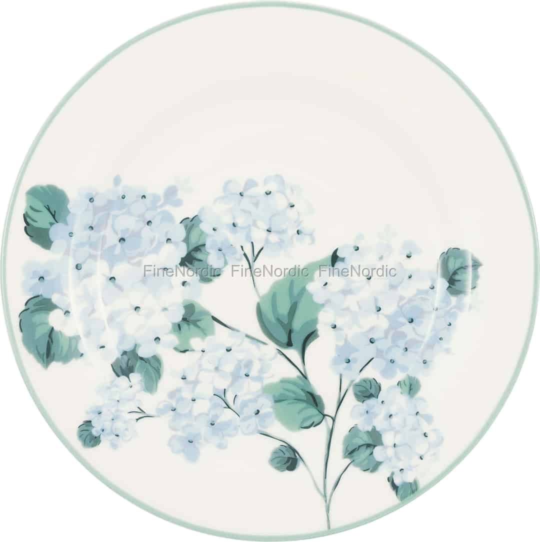 Liliana White-kollektionen fra GreenGate er en kærlighedserklæring til den tidløse charme i en skandinavisk have i fuldt flor. Hver tallerken er et lærred for frodige, lyseblå hortensiaer, gengivet med en kunstners hånd på en varm, råhvid stentøjsbund. Den blanke glasur fanger lyset på smukkeste vis og fremhæver de fine farvelag i hvert kronblad og blad. Det er et design, der føles både nostalgisk og forfriskende lyst, og som inviterer dig til at sætte farten ned og værdsætte de enkle, smukke øjeblikke i din dag.