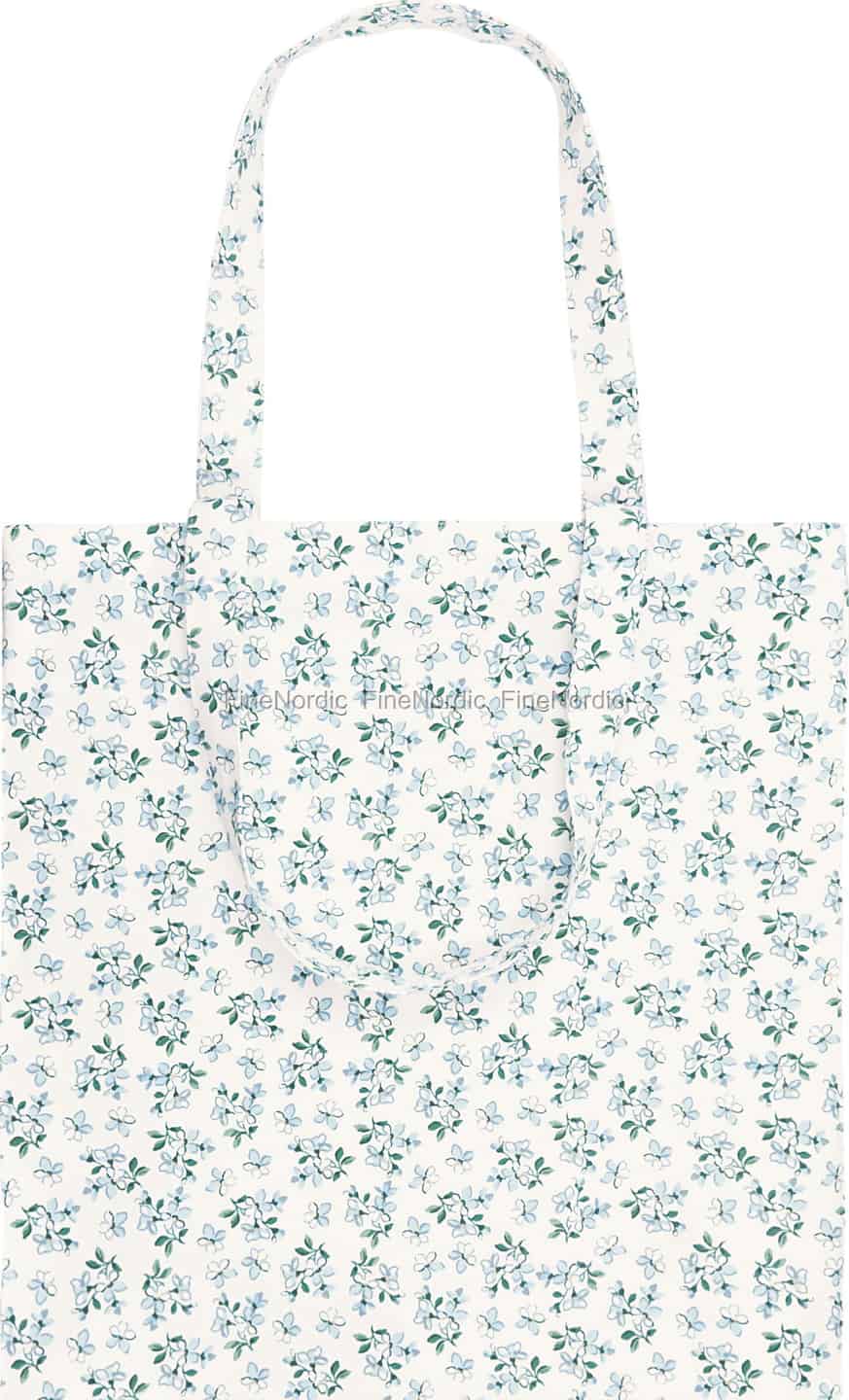 GreenGates Alaia White-kollektion er en kærlighedserklæring til de enkle glæder ved en skandinavisk sommer. Det sprøde, hvide bomuldslærred danner den perfekte baggrund for en yndig dans af lyseblå blomster og flagrende sommerfugle. Hver detalje er omhyggeligt gengivet, hvilket skaber et mønster, der føles både tidløst og forfriskende moderne. Denne taske er ikke blot et accessory; den er et stykke bærbar kunst, der fortæller en historie om blomstrende enge og lange, lyse dage – en blid påmindelse om at finde skønhed i de små øjeblikke.