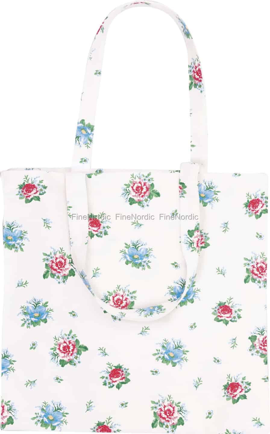 Alivia White-tasken indfanger den stille glæde ved en skandinavisk sommerhave i fuldt flor. Hver lille buket, spredt ud over den sprøde, hvide bomuld, fortæller en historie om varm solskin og blide briser. Det er et design, der føles både nostalgisk og vidunderligt friskt, skabt af GreenGate for at bringe en følelse af enkel, hjertevarm skønhed ind i dit liv. Uanset om du samler friske råvarer eller mødes med en ven til kaffe, er denne taske en dejlig og pålidelig ledsager.