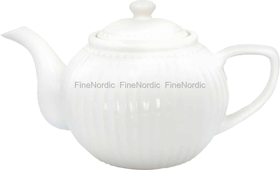 Forestil dig den enkle glæde ved en perfekt brygget kande te, klar til at blive delt. Alice White-tekanden fra GreenGate bringer denne stille glæde til dit bord med sin klassiske charme og yndefulde fremtoning.