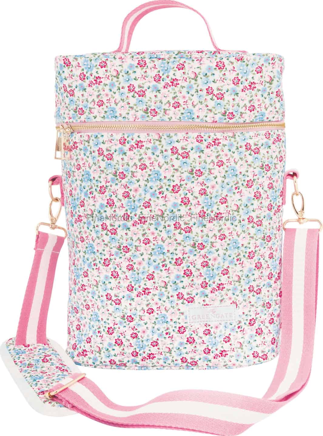 - Et signaturblomsterprint fra GreenGate: Udsmykket med det yndige Louisa White-mønster tilfører denne køletaske et strejf af romantisk, skandinavisk design til dine udendørs udflugter.