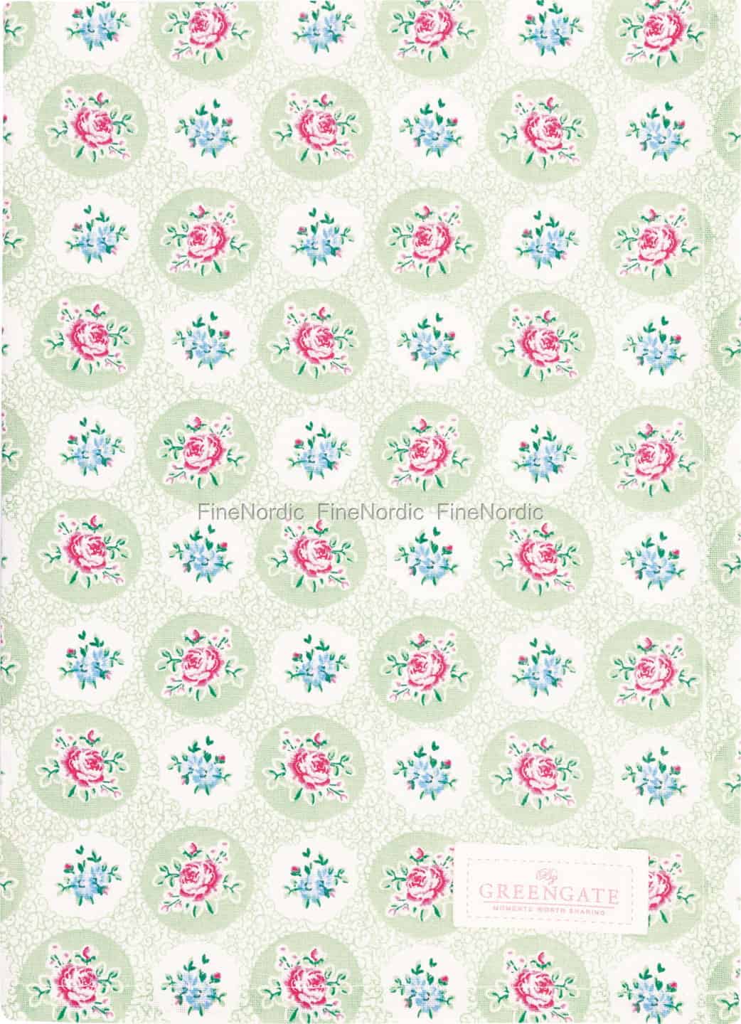 Forestil dig den milde varme på en sommermorgen i en frodig have. Viskestykket Elle Pale Green indfanger netop denne stemning med sit delikate blomstermønster af lyserøde roser og spæde blå blomster på ren, blød bomuld.