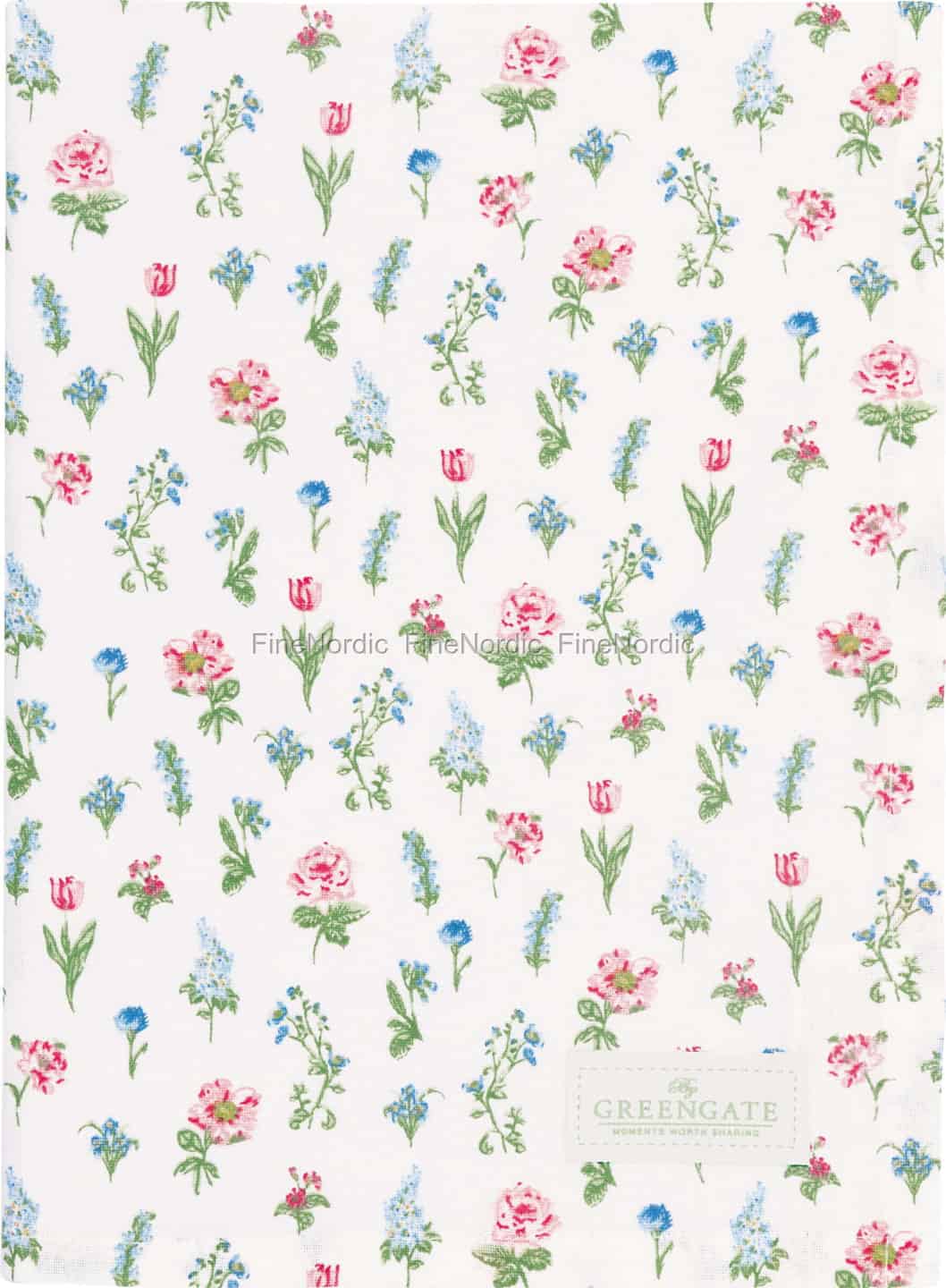 Lad den blide charme fra Estrid White-kollektionen føre dig til en solbeskinnet skandinavisk eng. Hver blomst – fra de bløde rosa roser til de sarte blå forglemmigej – er gengivet med en kunstners hånd, hvilket skaber et mønster, der føles både friskt og vidunderligt nostalgisk. Dette viskestykke er mere end blot en nødvendighed i køkkenet; det er et lille stykke historiefortælling, designet til at fylde dit hjem med den stille glæde og enkle skønhed, som GreenGate er berømt for.