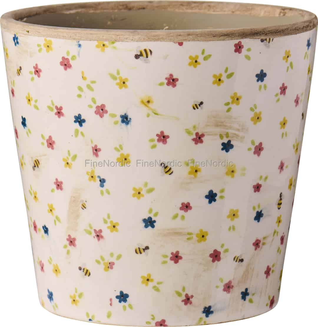 Forestil dig en solbeskinnet vindueskarm, hvor den blide summen af bier driver ind fra haven. Denne yndige 'Petit Fleur'-krukke indfanger netop den enkle, glædesfyldte følelse og bringer et strejf af vild engblomstcharme til dine yndlingsplanter.
