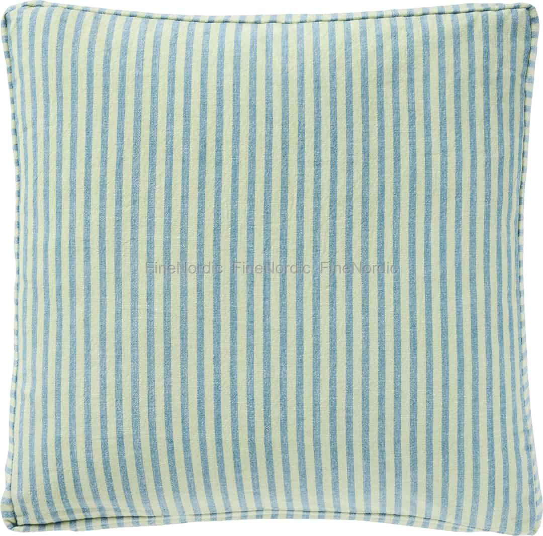 Ib Laursen Bokspudebetræk "Linea" med lysegrønne og blå tynde striber 45 x 45 cm