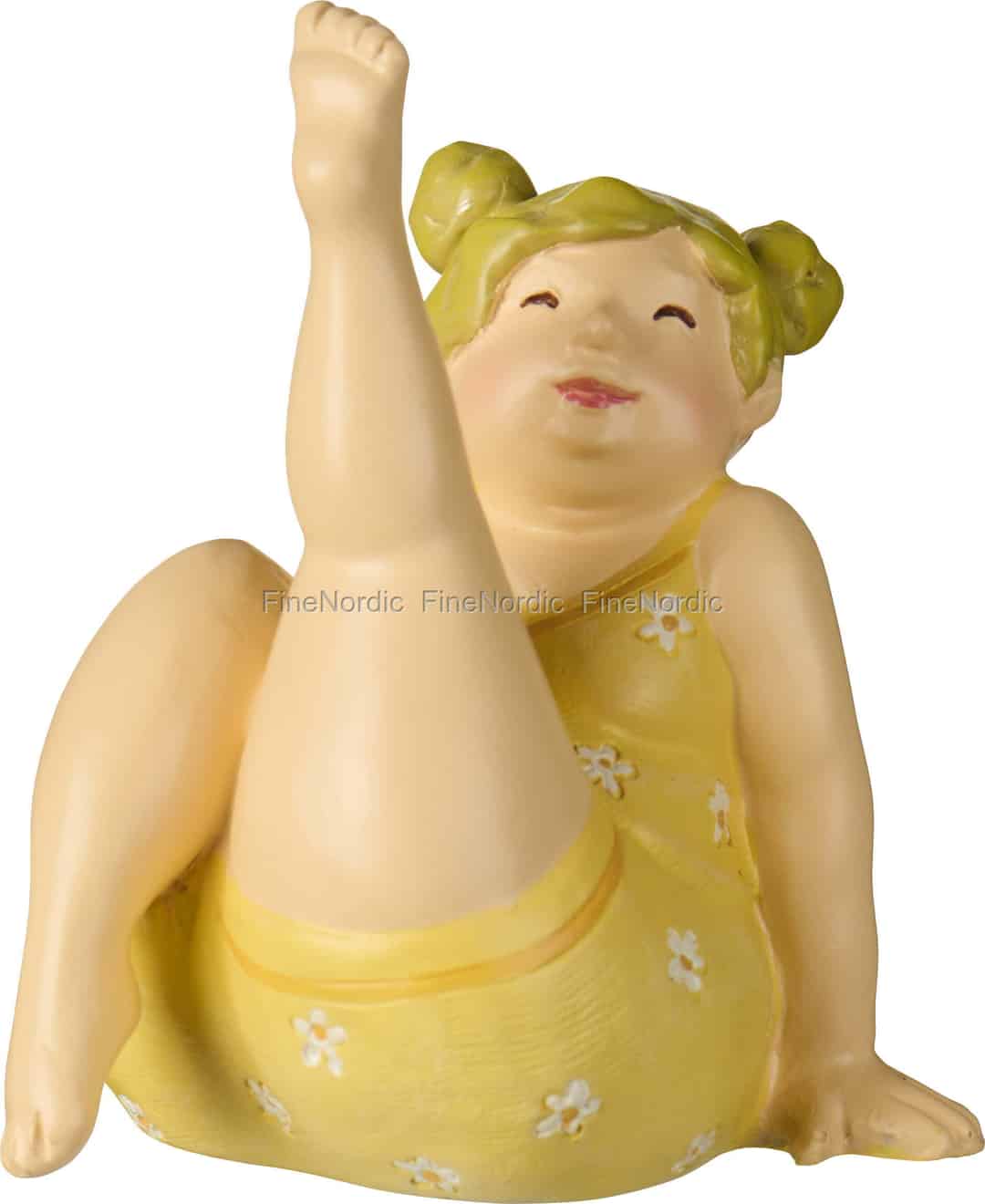 Mød den lille figur, der minder os om at finde glæde i stilheden. Denne vidunderlige dame fra Ib Laursen er indbegrebet af den rene, enkle lykke på en doven sommerdag, hvor bekymringerne driver væk som skyer på himlen. Hendes tilfredse smil og legende stilling er en invitation til at stoppe op, trække vejret og værdsætte øjeblikket. Hun stræber ikke efter den perfekte yogaform; hun nyder blot følelsen af solskin på huden og friheden ved ikke at skulle være andre steder.