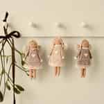 Forestil dig dem puttet ind mellem juletræets grønne grene eller hængende fredfyldt fra en knagerække i din entré, hvor de byder alle gæster blidt velkommen. Deres tekstile former og håndlavede fornemmelse bringer en mærkbar varme og blødhed til din juleindretning. Lad denne trio af skytsengle våge over dit hjem, skabe en fredelig atmosfære og minde dig om de stille, glædelige øjeblikke, der gør højtiden helt speciel.