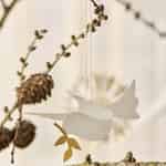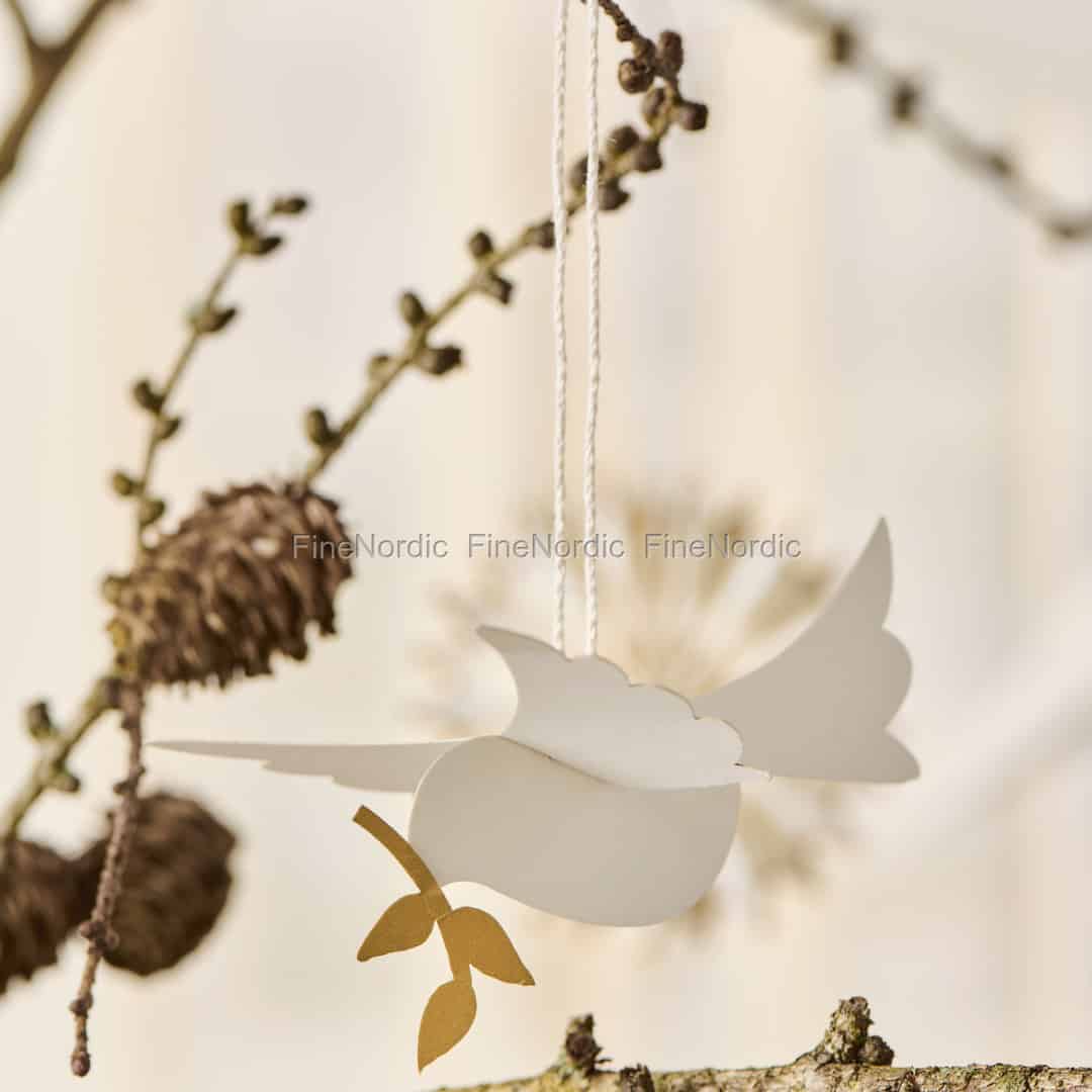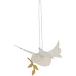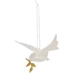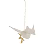 Forestil dig denne fredfyldte budbringer pynte på en gren på dit juletræ, puttet ind mellem grannåle og funklende lys. Den er lige så fin bundet på en særlig gave, hængende fra et rustikt grenarrangement på kaminhylden eller som en del af en rolig vinduesudstilling. Dens lethed lader den danse i den mindste brise og bringer en fin fornemmelse af liv og ro til dit hjem i hele den festlige sæson og længe efter.
