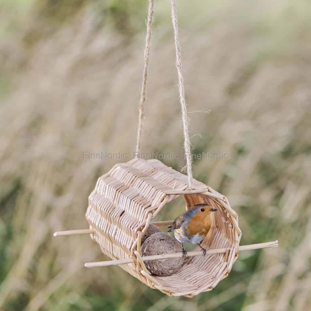 - Håndlavet og naturligt udtryk: Foderhuset er flettet i hånden af naturlig pil og falder smukt ind i haven. Det tilbyder et robust og beskyttet spisested, som fuglene vil elske at besøge.