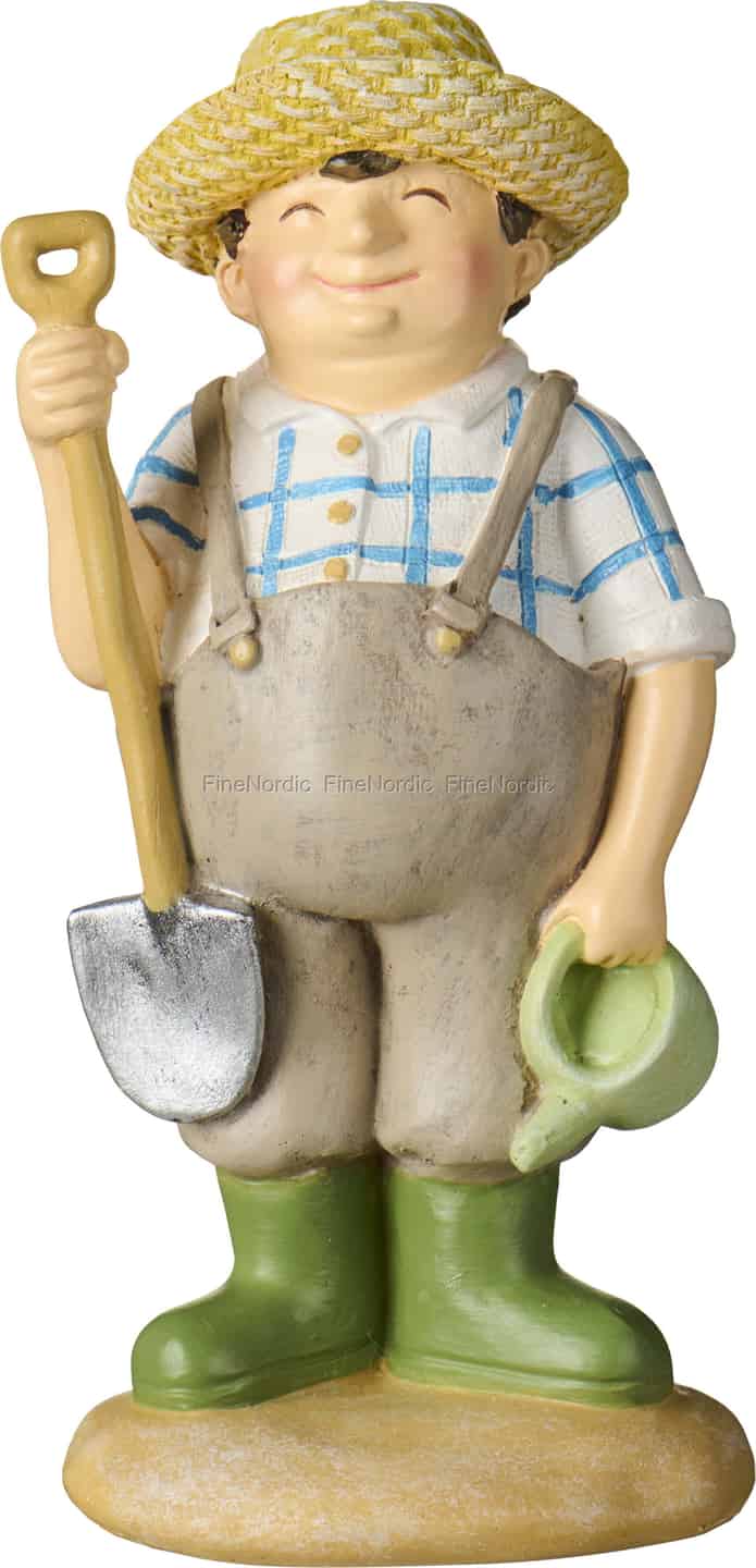 Placer denne charmerende figur i en køkkenvindueskarm, hvor du dyrker dine krydderurter, eller lad ham stå vagt over sukkulenterne på din bogreol. Hans tilstedeværelse er en blid påmindelse om at sætte farten ned og værdsætte naturens små vidundere. Den høje kvalitet af polyresin fanger hver en yndig detalje, fra hattens tekstur til spadens metalliske glans, og skaber en tidløs pyntegenstand, der bringer en lille historie og en masse varme ind i dit hjem.