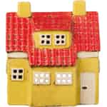 - Et strejf af håndlavet charme: Med sine solgule vægge og livlige røde tag er dette hus fremstillet af keramik med en rustik, blank finish, der tilføjer en unik, håndlavet karakter til din indretning.