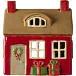- Charmerende, håndlavede detaljer: Fra den festlige krans på døren til de små gaver, der venter udenfor, er hver detalje nænsomt udformet i glaseret keramik, hvilket giver huset en unik, rustik karakter.