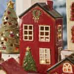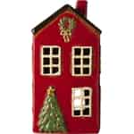 - Charmerende håndlavede detaljer: Fremstillet af keramik i høj kvalitet med en dyb, blank rød glasur, byder dette hus på fine, støbte detaljer – fra den lille krans til det festlige juletræ.