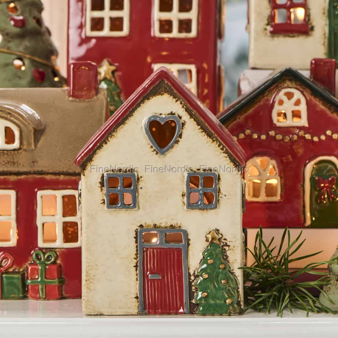 Når tusmørket falder på en vinteraften, forestil dig en lille landsby, der lyser varmt i din vindueskarm. Dette yndige keramik hus fra Ib Laursen er klar til at blive en del af din elskede julefortælling og kaste et blødt, indbydende lys.