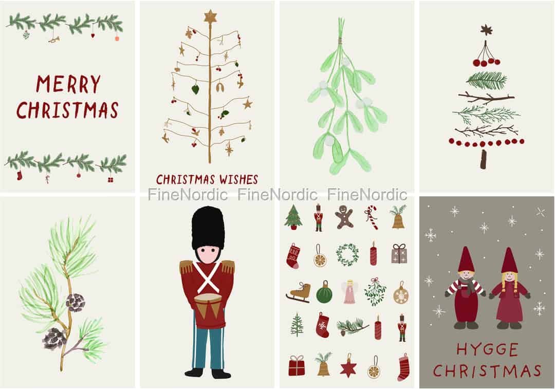 - Et unikt design til enhver hilsen: Dette yndige sæt indeholder otte individuelle illustrationer, fra klassiske tinsoldater til søde nisser, så du kan vælge det perfekte kort til hver enkelt på din liste.