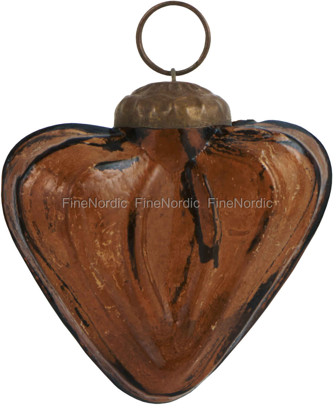 Julekugle hjerte amber lille, fra Ib Laursen.