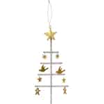 - Charmerende messingvedhæng: Fra grenene hænger søde, nostalgiske ornamenter i en varm messingfinish, herunder stjerner, duer og honningkagemænd, der fortæller en historie om julestemning.