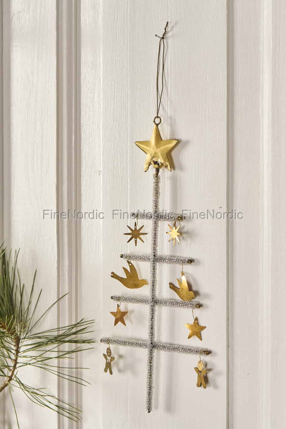 Forestil dig det bløde skær fra stearinlys, der fanger glimtet fra bittesmå perler og messingets varme glød. Dette udsøgte juletræ til ophæng fra Ib Laursen er et lille stykke julemagi, skabt til at bringe en fortælling om nostalgisk charme ind i dit hjem.