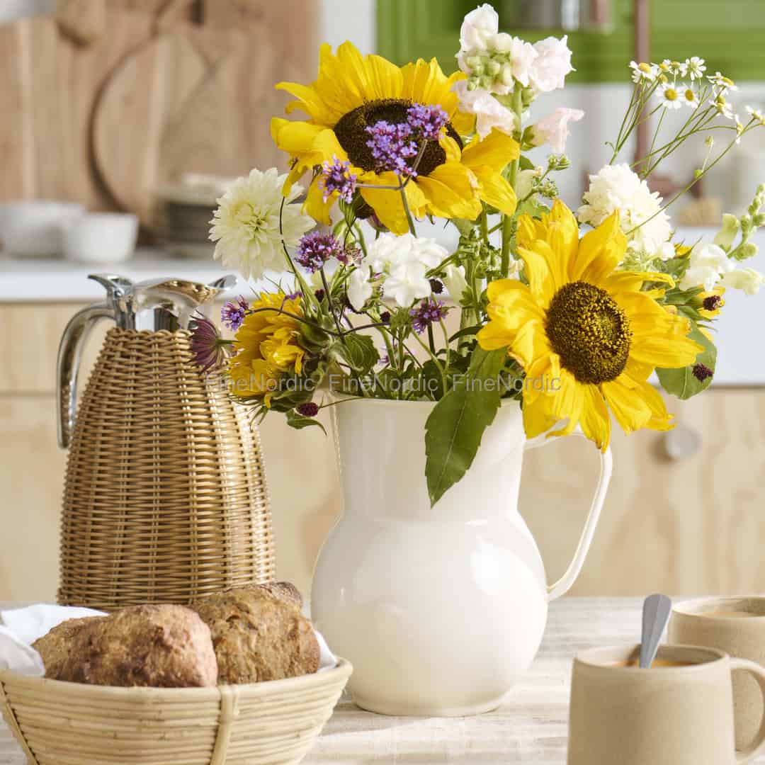 Denne kande er mere end blot service; den er et redskab til at skabe dejlige stunder. Fyld den med iskoldt vand med mynte til gæsterne, eller skab et betagende midtpunkt med en buket af strålende solsikker. Dens robuste konstruktion og praktiske design sikrer, at den bliver en følgesvend til mange års sammenkomster, fejringer og stille hverdagsglæder. Lad den være en påmindelse om at finde skønhed i de enkle, brugbare ting.
