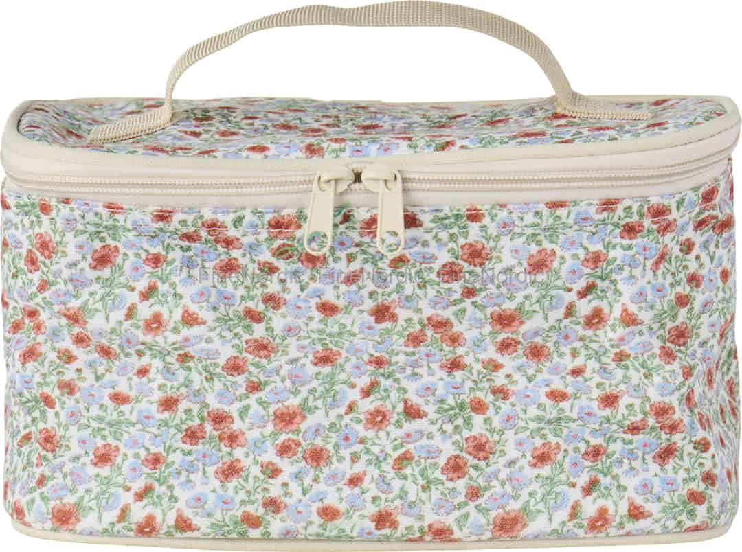 Inspireret af vilde blomsterenge og afslappede eftermiddage er denne køletaske fra Ib Laursen mere end blot praktisk tilbehør; den er en invitation til at sætte farten ned og nyde øjeblikket. Det fine mønster, med et drys af støvede røde og lyseblå blomster, vækker en følelse af nostalgi og landlig charme. Hver detalje, fra det bløde bomuldsstof til den enkle cremefarvede lynlås, er nøje gennemtænkt for at bringe et strejf af underspillet skønhed til din hverdag eller særlige udflugter.