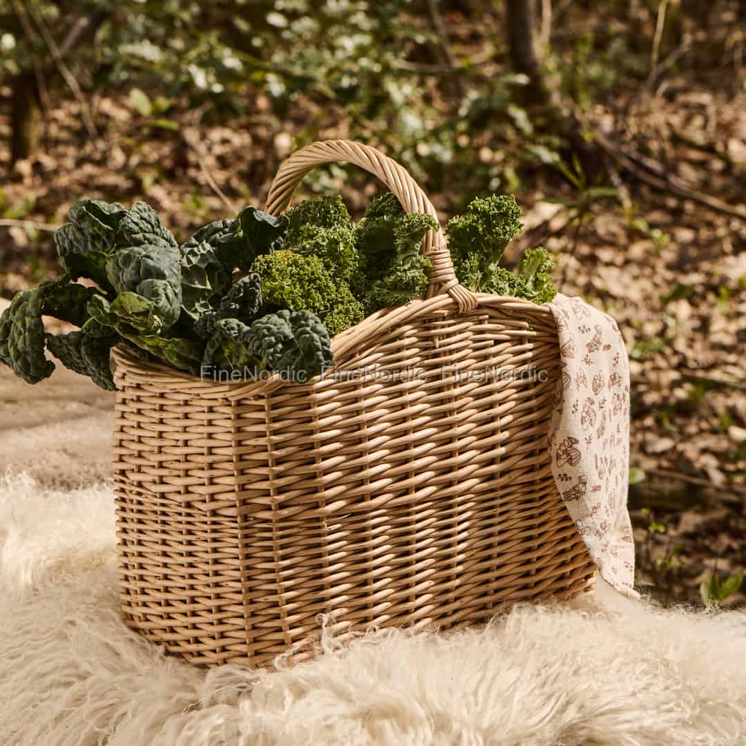 Ud over at være perfekt til at sanke i naturen, finder kurven også en naturlig plads i dit hjem. Lad den opbevare hyggelige tæpper ved pejsen, holde styr på dine yndlingsmagasiner i stuen eller byde gæster velkommen som en charmerende holder til friske håndklæder. Dens alsidige størrelse og klassiske design gør den til et funktionelt og dekorativt element, der tilføjer varme, uanset hvor du placerer den.