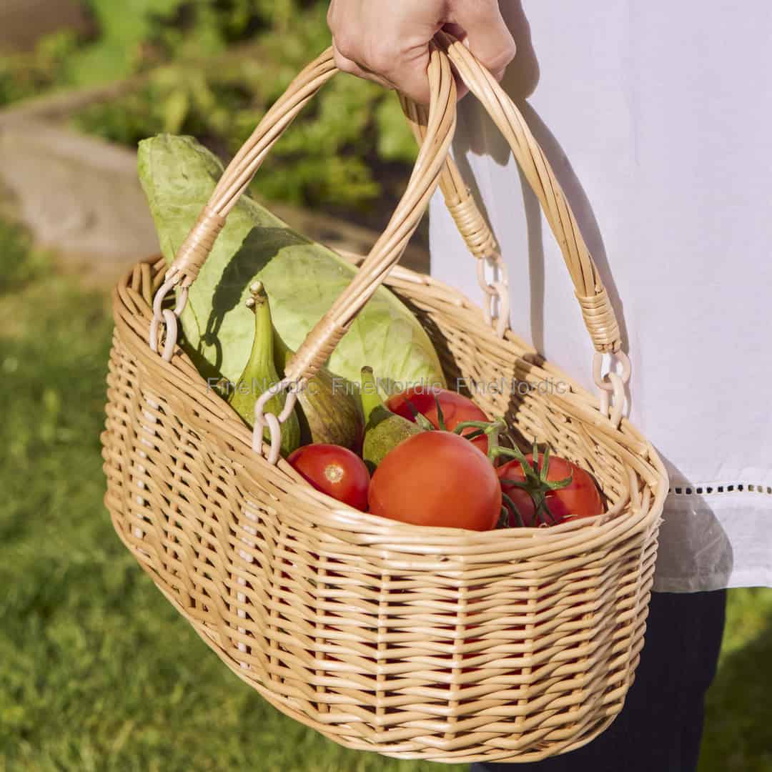 - Rummelig og alsidig form: Det generøse ovale design, som måler 38 cm i længden, er ideelt til at rumme alt fra friske råvarer og brød til strikketøj eller børnenes små legetøj.