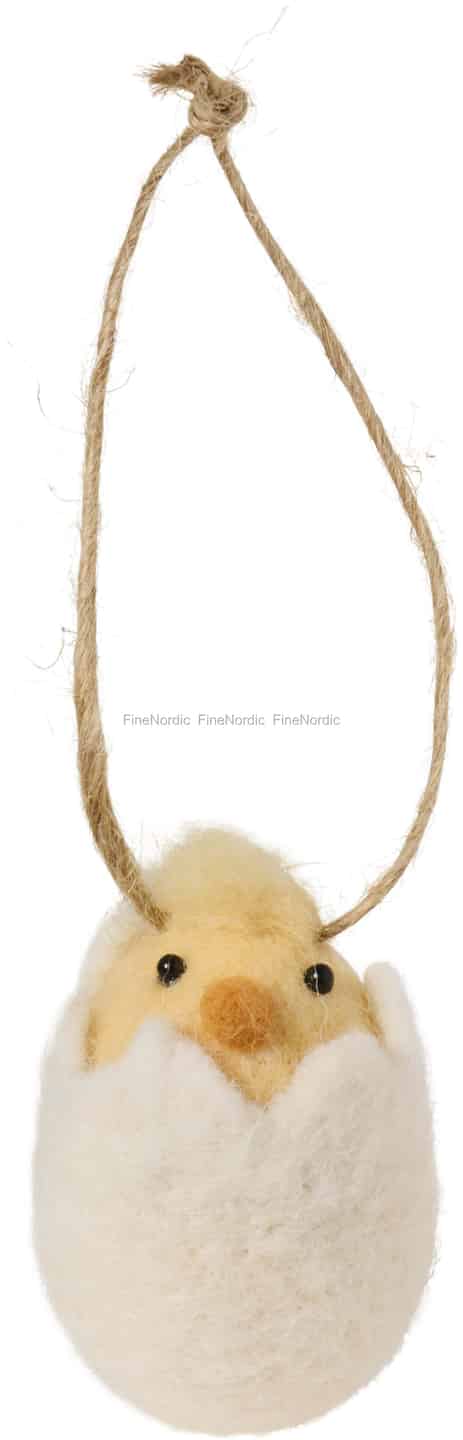 Byd forårets spæde tegn velkommen i dit hjem med denne bedårende lille kylling. Den er fremstillet af blød, filtet uld, og dens søde udtryk, der titter frem fra en hyggelig æggeskal, indfanger den stille glæde ved den nye årstid.